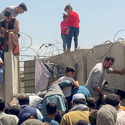 Afghans living in Kabul have awoken to their first full day under Taliban rule. Desperate scenes have been witnessed at Kabul's international airport as hundreds of people attempt leave Afghanistan. Eyewitnesses have told the ÃÛÑ¿´«Ã½ that at least two civilians have been killed. ÃÛÑ¿´«Ã½ correspondent, Anbarasan Ethirajan, has been monitoring developments from the Indian capital, Delhi. He says there is an "uneasy calm" over the city as people wait to see how events will unfold, and apprehension regarding Taliban intentions. Photo: A man pulls a girl to get inside Hamid Karzai International Airport in Kabul, 16 August 2021 Credit: Reuters