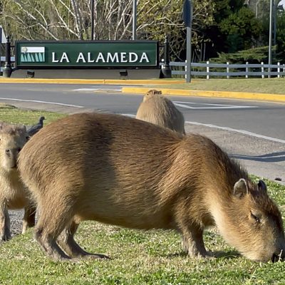 The exclusive Nordelta gated community north of Buenos Aires were recently invaded by capybaras, the world's largest rodent. Gardens were tunnelled, plants eaten, but with half of Argentinians living in poverty, many were siding with the animals, as ÃÛÑ¿´«Ã½ Mundo contributor Macarena Gagliardi reports. Image: Capybaras in Tigre, Buenos Aires province, in August 2021 Credit: Magali Cervantes/AFP via Getty Images