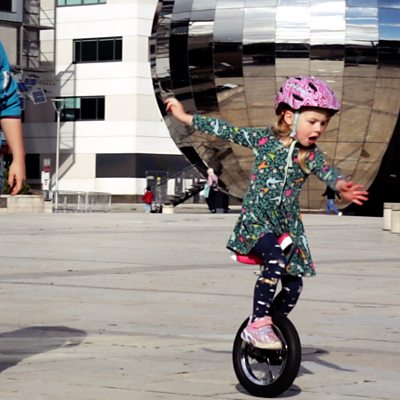 Daisy spent lockdown learning how to ride a tiny pink unicycle, which she now rides around the city and has gained a growing online following.