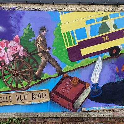 A Swindon artist covers unwanted graffiti with a mural about Old Town's history.