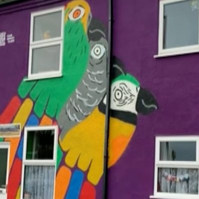 The house has been painted by the Reprezent Project to reflect the passion of its parrot-loving owner, Matthew Reeve, who can often be seen in the town with one of his parrots.