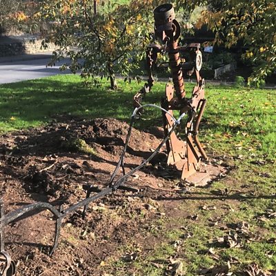 A new sculpture of a veteran serviceman returning from war and coming home to his farm.