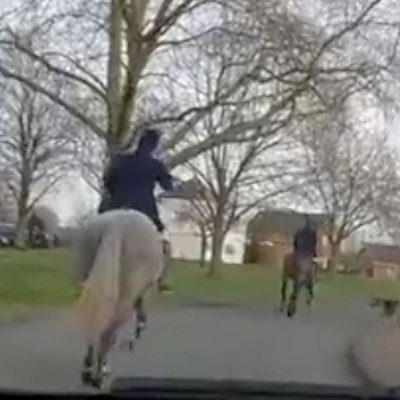 Hounds were filmed running through streets and gardens in Upton upon Severn.