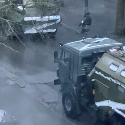 Kherson, a key port city in southern Ukraine was the first major city to be taken by Russia, since Ukraine was invaded. Its mayor, Igor Kolykhaev, said Russian troops had forced their way into the city council building and imposed a curfew on residents. Anna is in an underground shelter with her family and seven-year-old daughter. She says there are other children there, some of whom are suffering from the cold, and even newborns, and the situation is "tough and stressful". She goes on to say that Russian soldiers are walking around the streets, and have occupied different sites with vehicles and tanks. She says people are scared to go on to the street, and the shelter is relying on charitable donations for food. Photo: A military truck and tank are seen on a street of Kherson Credit: Reuters