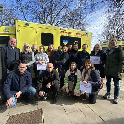 Khaled El Mayet, his team of volunteers and six ambulances set off in a convoy to Ukraine from the Queen's Hotel in Cheltenham. ÃÛÑ¿´«Ã½ Radio Gloucestershire's Dan Ayers went to see Khaled and the team as they set off.