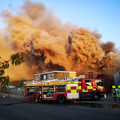 Ten fire crews tackle a large blaze at Riverway Foods in Harlow. Local residents are being asked to keep windows and doors closed due to the amount of smoke in the area. The fire is being dealt with by eight crews from Essex and two from London. Dorottya Spányik tells ÃÛÑ¿´«Ã½ Essex that her husband works at the factory, although she says that everybody there is safe.