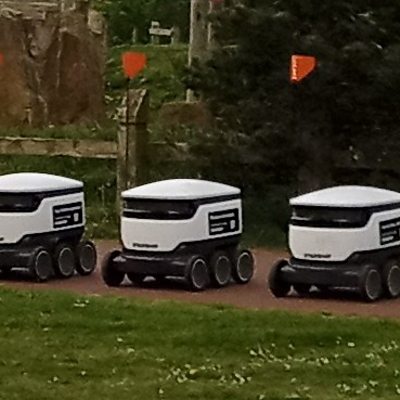 Testing out the new delivery robots that have taken to the streets of Cambourne.