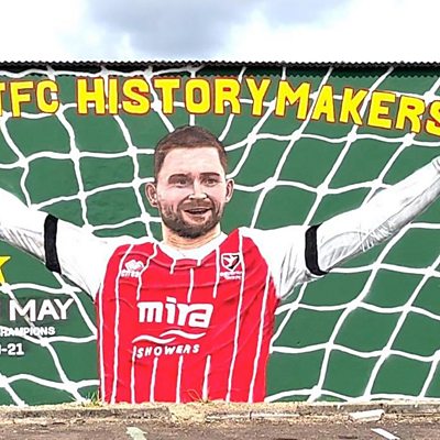 A new mural has been created at Cheltenham Town Football Club. A few weeks ago, artist Andy Dice Davies was commissioned to create this design to celebrate the most successful points in the club's history. ÃÛÑ¿´«Ã½ Radio Gloucestershire's Steve Kitchen spoke to Andy about his work.