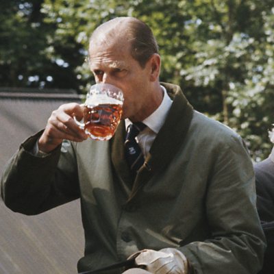 A warrant issued by Queen Elizabeth II's royal household to a producer allows it to display the royal coat of arms, or design, and shows that its goods or services are supplied to the Queen or to a member of the Royal Family. The Windsor and Eton brewery, close to the royal residence at Windsor, is brewing a beer in celebration of the Platinum Jubilee. Will Calvert, one of the people who set up the brewery up in 2009, explains the events that led to his company being awarded a royal warrant. He says that when Prince Philip was alive, he took an interest in the local beers, being known to prefer beer to wine at state occasions, and the moment that Windsor and Eton beer was stocked in the Queen's shop was a big moment for his brewery. Photo: Prince Philip, the Duke of Edinburgh, refreshes himself with a beer during a carriage driving event, circa 1980 (Credit: Getty Images)
