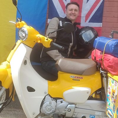 Taking a motorbike around the world may be on the bucket list of many people - but our next guest has taken that idea and changed it up a bit - and it's all in aid of a good cause. A couple of weeks ago, Mark Johnston set off on a mission to try to break the world record for completing a 10,000 mile journey across 30 countries on a 50cc motor bike which has a top speed of about 30mph! It's to help raise money for Ukraine through the charity 'Pioneer People Wirral'. Mark's about half-way through his challenge so we decide to catch up with him.
