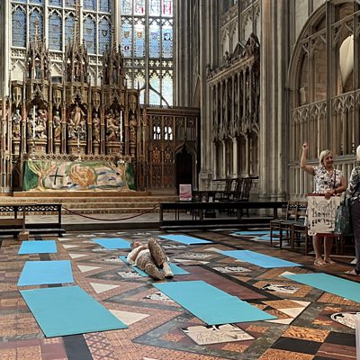 Sound bathing sessions are running throughout the summer at Gloucester Cathedral. It's an ancient practise, but rather than bathing in the sun, or woodland, you bathe in sound waves instead, all to help mental wellbeing. So Jon Smith went along to the quire to have a go.