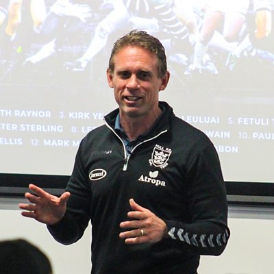 Richard Stead talks to Brett Hodgson after the black and whites lose at Salford.