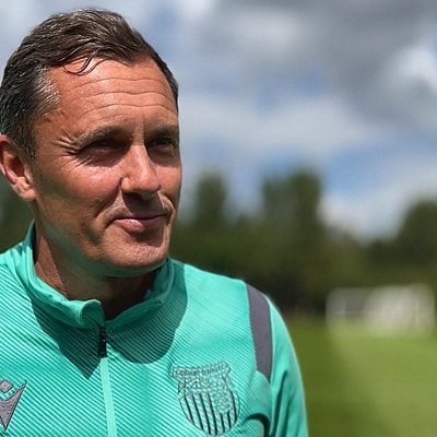 Matt Dean talks to Paul Hurst after a win in League Two.