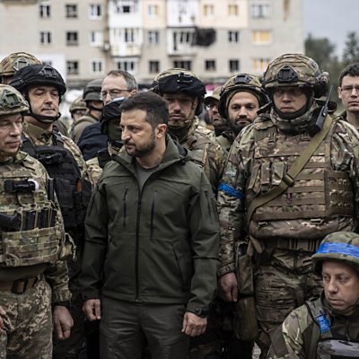 Ukraine's president, Vlodomyr Zelensky, visited the city of Izyum, located in eastern Ukraine on the Donets River in Kharkiv Oblast. Ukrainian troops recently recaptured this city, which had been a key logistics hub for Russian forces. Anton Gerashchenko, an adviser to the Minister of Internal Affairs of Ukraine, travelled to Izyum with President Zelensky. He joined Newsday to discuss what it was like there, saying: "We were lucky to speak to inhabitants of Izyum, and speak to these people. Also, we were shocked to see the destruction of the city, and we have already found 1,000 dead bodies". During the interview, he was with his assistant interpreter, to conduct translations from the Ukrainian language to English. (Photo by Metin AktaÃ…/Anadolu Agency via Getty Images)