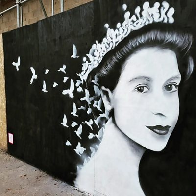 A mural showing the late Queen when she became monarch has appeared on the side of a former bank building at Warlingham, Surrey. The painting by artist Chris Shea depicts the younger Elizabeth wearing her crown, dissolving into a flight of doves.