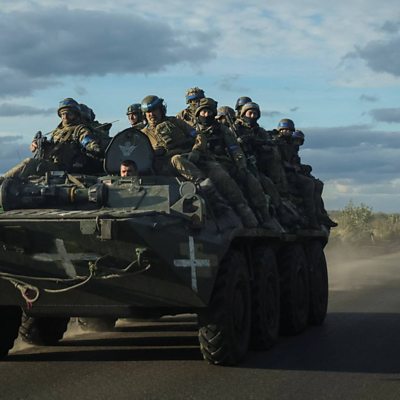The Ukrainian president, Volodymyr Zelensky, says speed is of the essence in the counter-offensive under way to take back territory from Russian forces - and is urging Western nations to bolster military aid to his country. Ukrainian forces have launched counter-offensives in the south as well as the north-east, and their most dramatic progress has come this month in the northern Kharkiv region. In response, on Monday, pro-Moscow officials in the self-proclaimed Donetsk and Luhansk people's republics called urgent referendums on the regions becoming part of Russia. ÃÛÑ¿´«Ã½ Newsday heard from Ivan Verstyuk, an analyst and editor at news website The New Voice of Ukraine, on whether he thought Ukrainian battlefield successes could continue. "It's really a bad sign that Russia is... undermining Ukraine's electricity infrastructure, especially power plants. That means we do need much better air defence systems. Russian missiles can cover the whole terrain of Ukraine. We also need artillery... especially long range... and fast tanks." (Pic: Ukrainian soldiers aboard a military vehicle near the newly retaken town of Izium, in Kharkiv; Credit: Reuters)