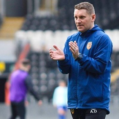 Andy Dawson speaks to David Burns after their 3-1 defeat against Middlesbrough.