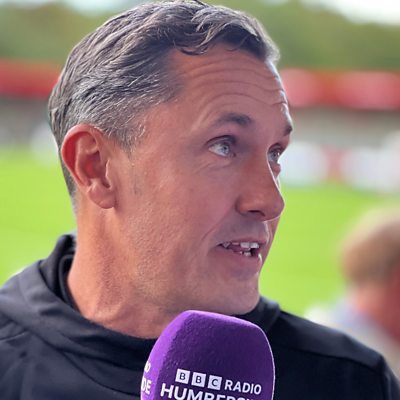 Paul Hurst speaks to John Tondeur after their loss to Doncaster.