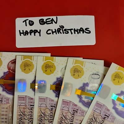 Francesa Anker has thanked an anonymous neighbour who kindly gifted her son one hundred pounds in a unsigned Christmas card, posted through her families front door. Her son Ben, has severe complexed needs that means he can't talk or use his limbs and has epilepsy and autism. The family believe the donation may have been inspired after their local community came together to help fund a wheelchair for Ben earlier in the year. Ben had been saving his disability allowance to go towards a three thousand pound device that will enable him to have conversations with others, the extra cash means he'll be able to purchase one. Francesca told ÃÛÑ¿´«Ã½ CWR's Trish Adudu she thinks the Kenilworth community are amazing and that the device will be a great help to Ben.