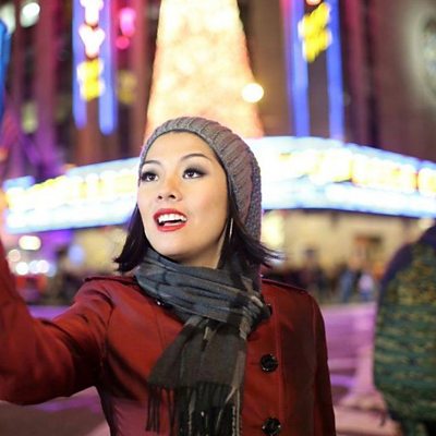 Elizabeth Chan writes and records only Christmas tunes (12 albums so far!). From January through to June she writes her music, then records during the summer time. She finds it hard to write Christmas music during Christmas time and believes the best Christmas songs are written in retrospect. Prior to singing, she worked in marketing - but always knew she had something different she wanted to give the world, to pursue Christmas music, but didn't know how. Cut to now and Elizabeth even has her office festively decorated year round and says people think she's "like Santa Claus, I'm around and then after Christmas I'm gone... I go back to my Christmas workshop and I write Christmas music for the next year." (Photo: Elizabeth Chan. Credit: Cherry Bright Music Group)