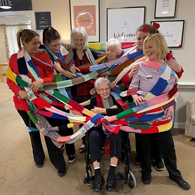 Residents at a South Liverpool care home have been busy knitting a huge scarf to promote togetherness and respect. The scarf is as long as the Liver Building is in height!