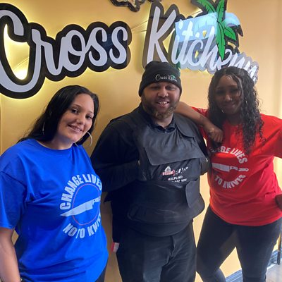 Cross Kitchenn and Trade The Blade founder Odane Cross has himself been stabbed. Jordan Turner & Danyelle King started the charity Change Lives No To Knives in memory of Jordan's brother who died from a fatal stab wound in October 2021. Together they're teaming up to encourage young people to hand over their blades for a reward under the roof of new Caribbean takeaway, Cross Kitchenn, in Rodbourne, Swindon.
