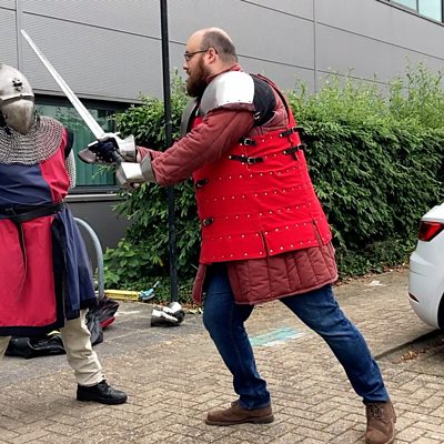 Practising the ancient art of armoured sword-fighting