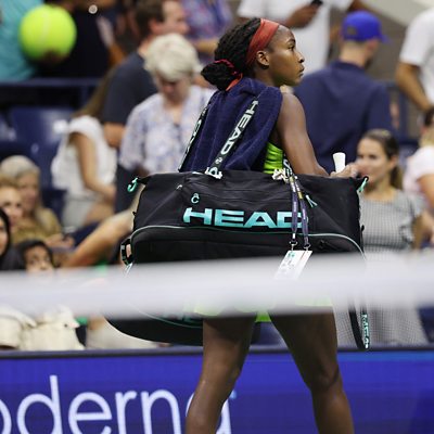 American teenager Coco Gauff reached her first US Open singles final by beating Karolina Muchova in a semi-final disrupted by climate protesters. Gauff wrapped up a 6-4 7-5 win over Muchova and will face second seed Aryna Sabalenka in Saturday's final. Four protesters chanting for the end of fossil fuels had interrupted the Gauff-Muchova match for 49 minutes. One man glued his feet to the floor on Arthur Ashe Stadium with some chants of "kick them out" towards the protesters. ÃÛÑ¿´«Ã½ tennis correspondent Russell Fuller and former tennis player Annabel Croft were watching and explain the situation to Sport Today’s Isaac Fanin and the impact it would have had on the players. Image: Coco Gauff of the United States leaves the court after protesters interrupt her Women's Singles semi-final match against Karolina Muchova of the Czech Republic on Day Eleven of the 2023 US Open at the USTA Billie Jean King National Tennis Center on September 07, 2023 in the Flushing neighbourhood of the Queens borough of New York City. (Photo by Elsa/Getty Images)