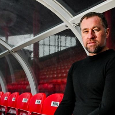 Grimsby head coach David Artell talks to Matt Dean ahead of their FA Cup tie at Oxford.