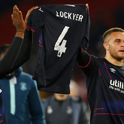 Carlton Morris reacts after Luton Town beat Sheffield United 3-2 at Bramall Lane.