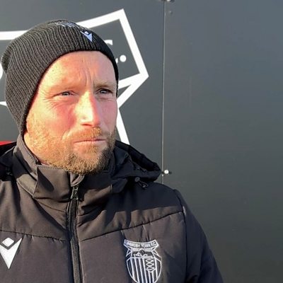 Grimsby First Team Coach Ben Davies talks to Matt Dean ahead Saturday's game at Accrington
