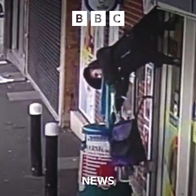 Woman hoisted in shop shutters goes viral
