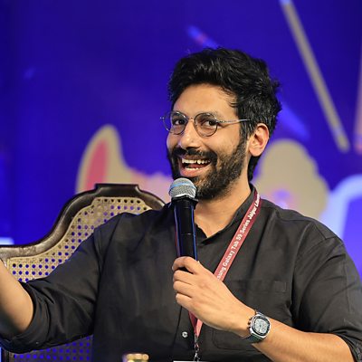 Kanan Gill started out as a YouTube sensation with his popular movie reviews of Bollywood films from the '90s. His success on Netflix and world tours has continued to delight audiences globally. He is also an actor and an author. As he embarks on the UK leg of a world tour with his show What Is This? he joined Nikki Bedi in the ÃÛÑ¿´«Ã½ Arts Hour studio who asked him why Indian stand-ups are becoming more successful internationally. "One primary factor - ubiquity of Indian people. We have a built-in audience in a lot of countries," he says. "The second aspect of it is Indian stand-up... it's been shaped by the sensibilities of the countries we go to... having toured everywhere it's exactly the same, everyone laughs at the same stuff," he says. (Photo: Stand-up comedian Kanan Gill speaks during the Jaipur Literature Festival 2024, India, 1 February, 2024. Credit: Vishal Bhatnagar/Getty Images)