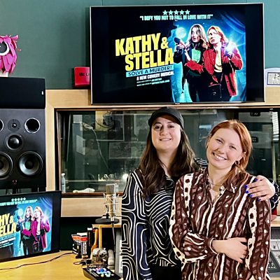 Bronté Barbé and Rebekah Hinds on Kathy & Stella Solve a Murder and an accident on stage.