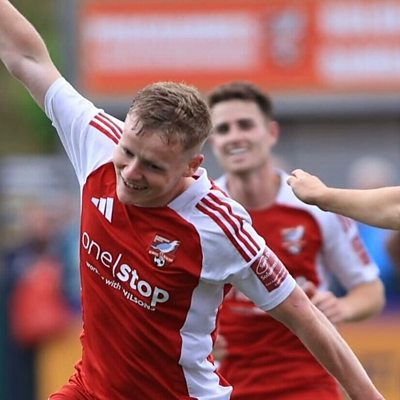 Scarborough Athletic midfielder Harry Green speaking to Andy Atkinson, after scoring and assisting during their 3-0 home win over Rushall Olympic.