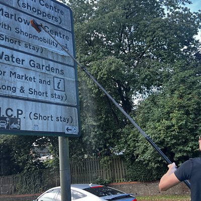 TikToker Liam Wildish, who makes videos cleaning road signs, visits Hemel Hempstead.