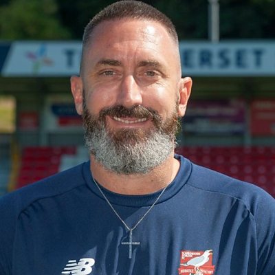 Scarborough Athletic manager Jonathan Greening speaking to Peter Spencer, ahead of their FA Cup third qualifying round at Warrington Rylands.