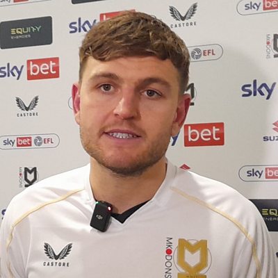 MK Dons defender Laurence Maguire reacts after beating Cheltenham 3-2.