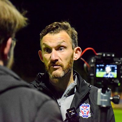 York City's Head of Youth Dan Wilson speaking to David Ward, after being knocked out of the North Riding Senior Cup by TIBS after penalties.