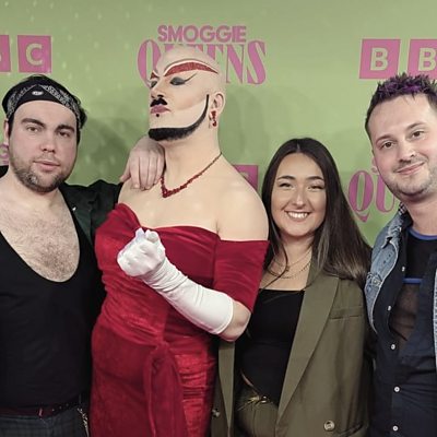 Stu, Glenn and Velvet from GURL Global steal Emma for the pink carpet of new show.