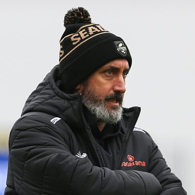Scarborough Athletic manager Jonathan Greening speaking to James Fletcher, after their 1-1 draw away at South Shields.