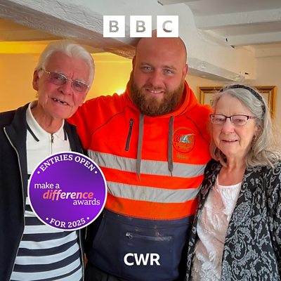 Steve Blundred and his truck are a familiar site in the Brinklow area. Whilst on his way home in January one day, Steve had planned to join his wife at her uncle's funeral but instead he stopped to help Derek and Kath Hancox, an elderly couple whose house was being flooded during extreme weather conditions. Using his truck to collect several tonnes of sand from the nearby quarry, Steve was able to help to protect the property making sandbags, and helped to clean up the aftermath when rain subsided. The couple now call him the "angel of Brinklow". He was a winner of the Great Neighbour award at ÃÛÑ¿´«Ã½ CWR Make a Difference awards in 2024. Inspired by this story? Make a Difference Awards entries are open for 2025. Find out more on bbc.co.uk/makeadifference.
