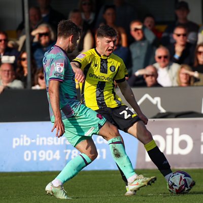 Harrogate Town midfielder Ellis Taylor speaks to Peter Spencer after their 1-0 home win to Carlisle United.