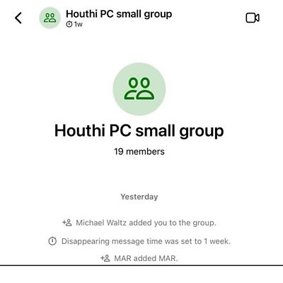 Farea Al Muslimi - a Yemeni research fellow at Chatham House, the foreign policy think tank in London - speaks to Newshour's James Menendez about the leaked messages between senior members of the Trump administration on a Signal chat group about US airstrikes on the Houthis. (Picture: Screenshot of the 'Houthi PC small group' released by The Atlantic)