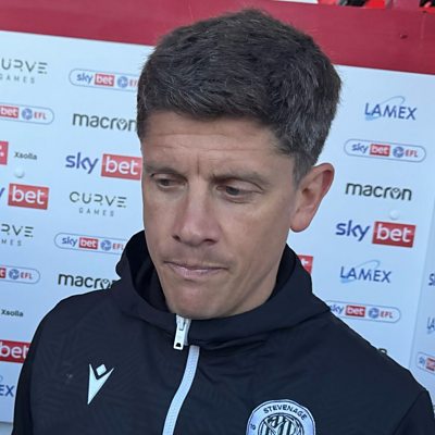 Alex Revell reacts after Stevenage win 3-1 against Crawley Town.
