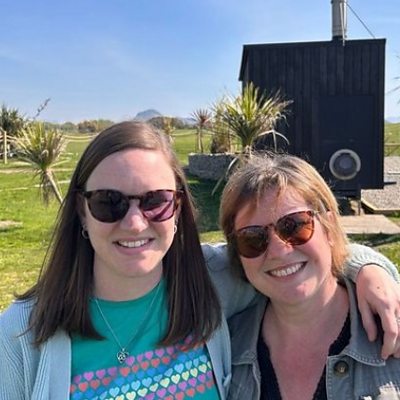 Y fam a'r ferch, Esther ac Holly, yn sôn am eu menter sawna newydd.