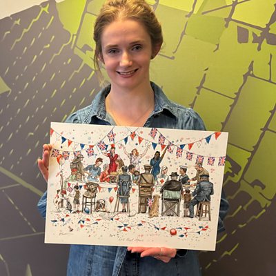 Eleanor Tomlinson has painted a royal air force flypast and street party for VE Day.