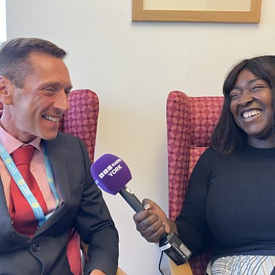 Nikki and Clare share their gratitude towards St Leonard's Hospice with Joanita Musisi.