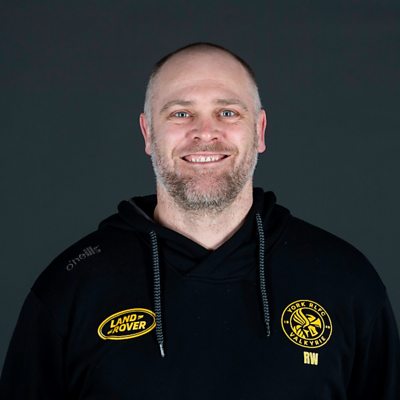 York Valkyrie assistant coach Rich Whiting speaking to Peter Spencer, ahead of their trip to Leigh Leopards.