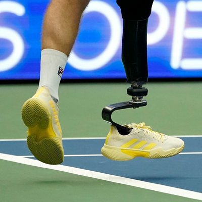 Meet Nicky Maxwell, a para-standing tennis player and President of the International Para-Standing Tennis Association. Maxwell had his leg amputated when he was 15 months old due to fibular hemimelia, a condition that involves the shortening or complete lack of the fibula, or calf bone. Growing up, he was an active rugby player until he suffered a series of knee injuries around 2010. After his doctors told him that continuing to play rugby would only cause further injury, he found himself without an outlet for sport for the first time in his life. So, how did he get involved in para-standing tennis & why isn't it played at Grand Slam events? Photo: Junior Tennis Champions Center player Nicky Maxwell serves during a Para-Standing Adaptive Players exhibition doubles match before the women's singles final match at the USTA Billie Jean King National Tennis Center in New York City, on September 9, 2023. (Credit: AFP via Getty Images)